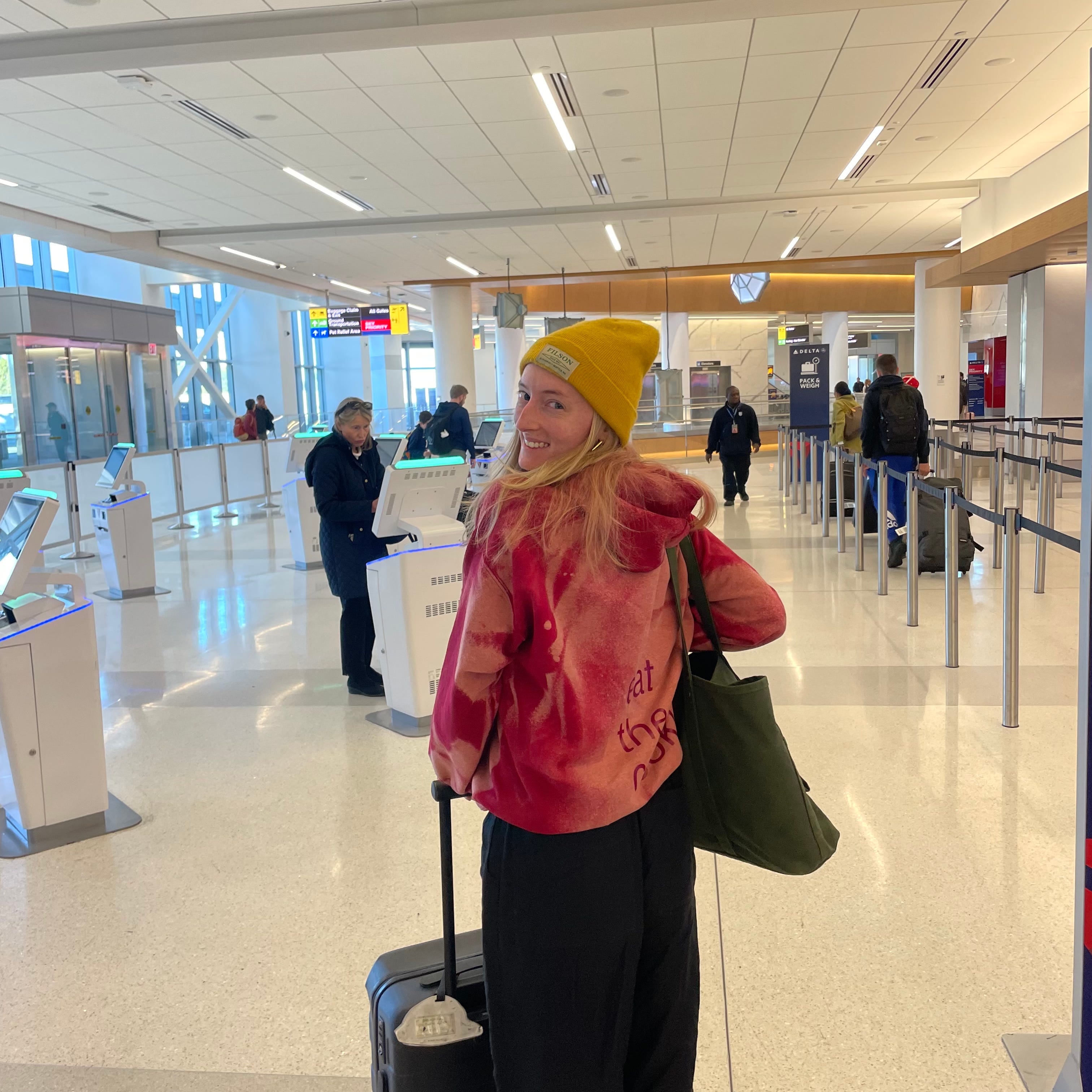 No one (so far) has quite related to my plight. I’ve arrived at the airport. I’m wearing comfortable pants and my emotional support hoodie. I’ll check back in later.